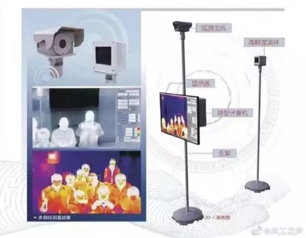 中國兵器工業集團夜視研究院研制出適用于大范圍人群測溫的“20-I型紅外發熱人群快速篩選系統”,采用非接觸式工作模式,具備人臉自動檢測技術,4~10米范圍實現全自動24小時連續實時測溫和超溫識別預警;測溫效率每分鐘約500人次,精度±0.3℃。春節期間緊急安排生產,600余支手持測溫熱像儀和在線式測溫熱像儀測溫鏡頭發往抗擊疫情第一線;第二批1000余支將于近期完成供貨。