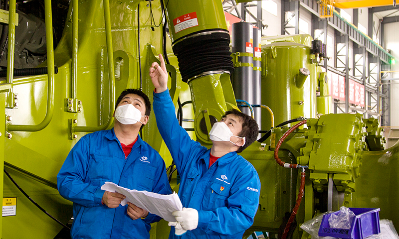 圖為北重集團(tuán)北方股份一線員工趕制生產(chǎn)進(jìn)度。