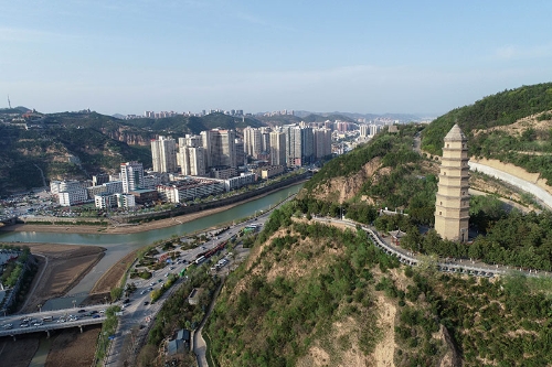 這是4月22日拍攝的延安市寶塔山(無(wú)人機(jī)照片)。新華社記者 張博文 攝