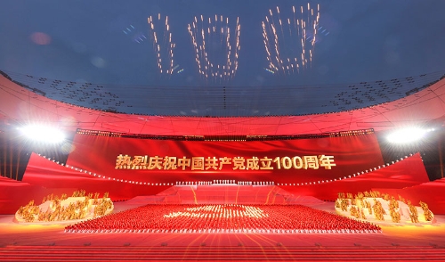 6月28日晚,慶祝中國(guó)共產(chǎn)黨成立100周年文藝演出《偉大征程》在北京國(guó)家體育場(chǎng)盛大舉行。這是盛典儀式。新華社記者 龐興雷 攝