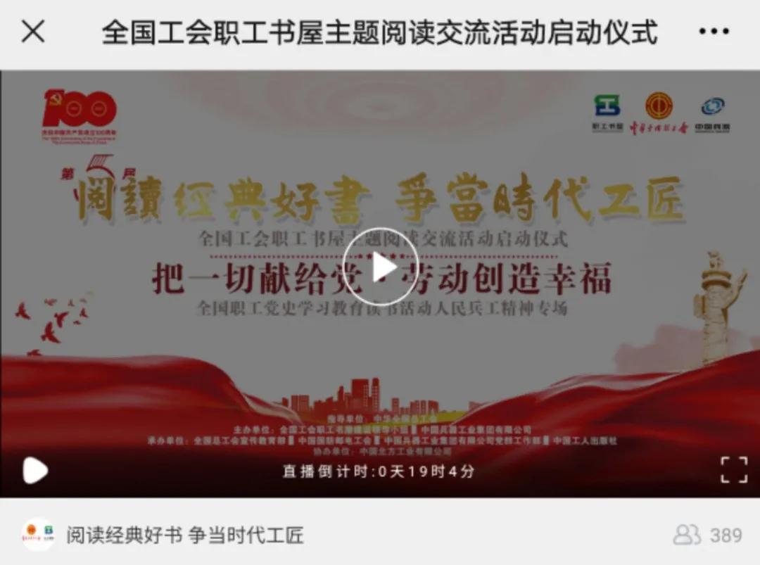 今天(4月23日)下午 15:00第五屆“閱讀經典好書 爭當時代工匠”全國工會職工書屋主題閱讀交流活動啟動儀式暨“把一切獻給黨·勞動創造幸福”全國職工黨史學習教育讀書活動人民兵工精神專場隆重開啟!