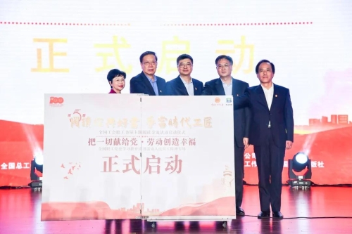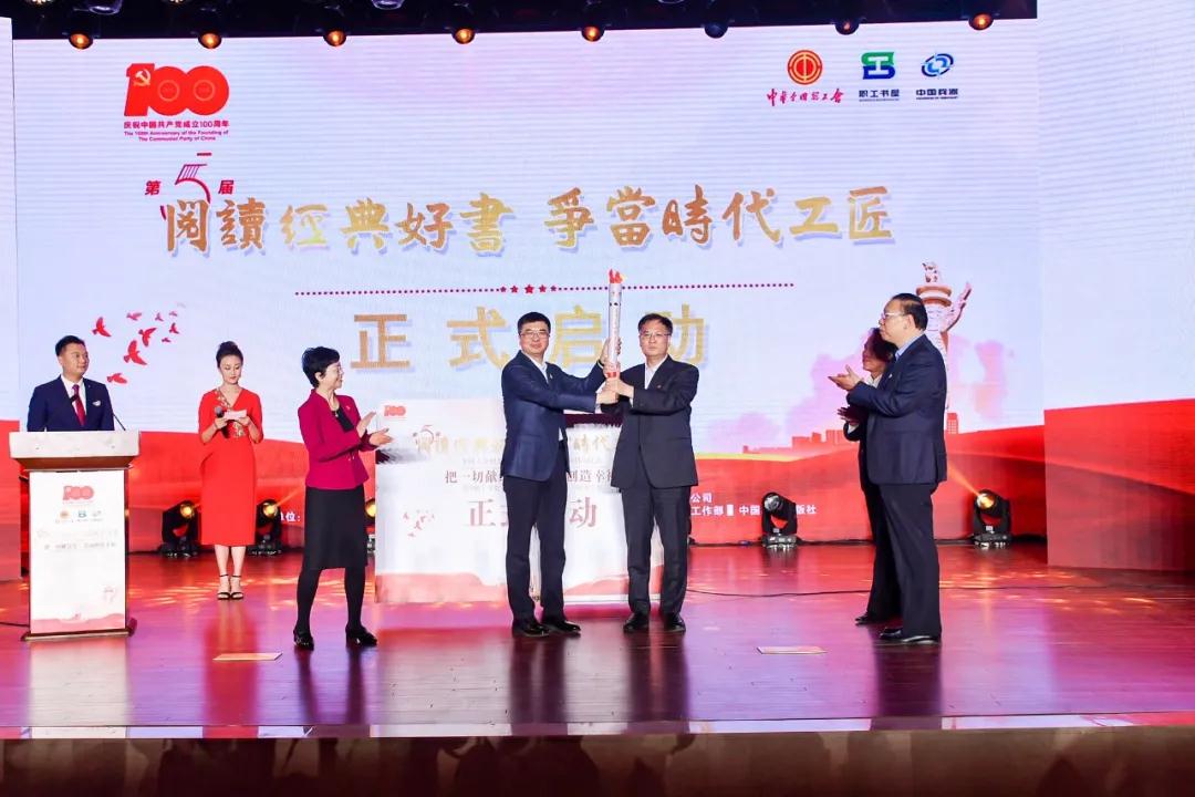 第五屆“閱讀經典好書 爭當時代工匠”全國工會職工書屋主題閱讀交流活動正式啟動,現場進行火炬傳授