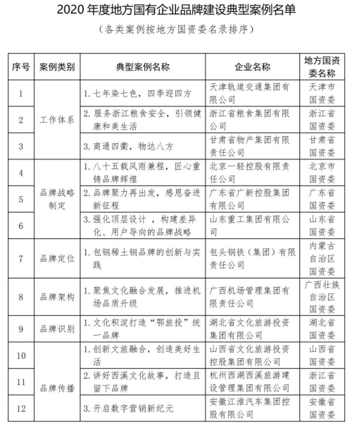 5月10日,由國家發展改革委等7部門和上海市政府共同主辦,國務院國資委特別支持的2021年中國品牌日活動在上海舉辦。 活動現場,國資委指導舉辦了中國企業品牌建設分論壇,會上發布了《2020年度中央企業品牌建設發展報告》、2020年度100個國有企業品牌建設典型案例和100個優秀品牌故事。中國兵器工業集團北重集團的“技術創新和商業模式創新并驅,打造知名民族礦用車品牌”入選2020年度100個國有企業品牌建設典型案例,中國兵器工業集團北方公司的微電影《大山里升起的希望》入選2020年度100個優秀品牌故事。 《2020年度中央企業品牌建設發展報告》分析了當前中央企業加強品牌建設的形勢要求,從戰略引領、專業運營、支撐保障、組織管控、全球推廣5個方面總結了中央企業年度品牌建設進展。 2020年度100個國有企業品牌建設典型案例和100個優秀品牌故事,匯集企業優秀經驗做法,豐富國企品牌資源池,促進企業相互學習借鑒,加快提高品牌管理專業化水平。 2020年度100個國有企業 品牌建設典型案例 來源/國資小新 |