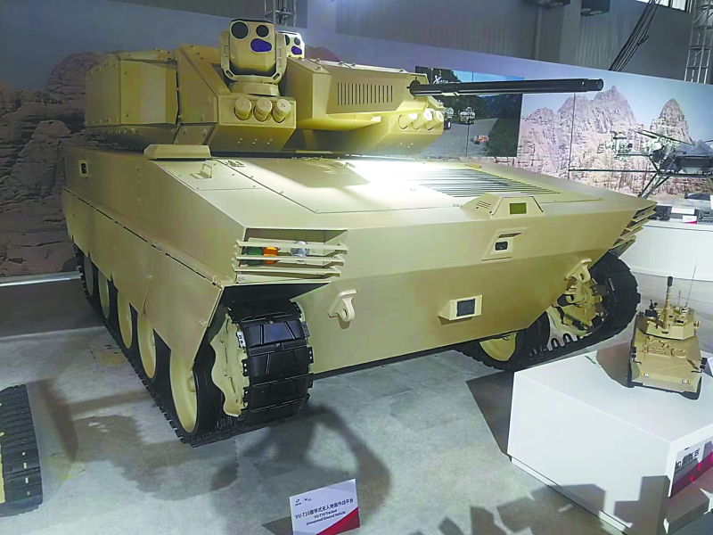 相比各種無人機和巡飛彈,珠海航展上的無人地面作戰(zhàn)車輛在作戰(zhàn)性能上也毫不遜色。除了VT-5U輕型坦克可以臨時客串“無人坦克”外,兵器工業(yè)集團的VU-T10履帶式無人地面作戰(zhàn)平臺也堪稱重型無人車輛。VU-T10主要針對城市環(huán)境作戰(zhàn),選擇采用厚重的履帶式底盤,配備有30毫米口徑遙控武器站,未來還可以根據(jù)需要配備4枚“紅箭-12”反坦克導彈,加載7.62毫米機槍,其武器配備的豐富程度相比俄羅斯BMPT“終結(jié)者”火力支援車也不遜色,卻沒有了后者在巷戰(zhàn)中可能遭遇人員傷亡的風險。