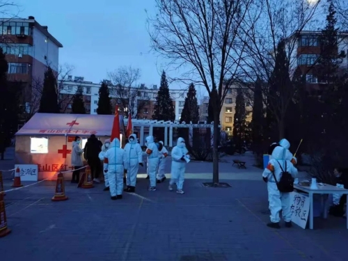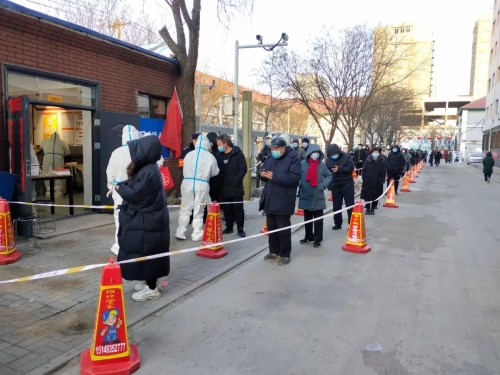 當(dāng)前,內(nèi)蒙古自治區(qū)疫情防控形勢依然嚴(yán)峻,包頭市中風(fēng)險(xiǎn)地區(qū)已達(dá)7個(gè)。面對疫情,中國兵器工業(yè)集團(tuán)有限公司駐包頭單位積極行動(dòng),支援當(dāng)?shù)匾咔榉揽兀仓踩谰€。 凌晨集結(jié),投身核酸檢測工作 來自一機(jī)集團(tuán)、北重集團(tuán)、材料院52所包頭事業(yè)部的共計(jì)500余名志愿者密切配合包頭市防疫部門、街道社區(qū)進(jìn)行全員核酸檢測,同時(shí)做好信息登記、維護(hù)秩序、宣傳政策等工作,確保核酸檢測全覆蓋。2月20日凌晨,在零下20度的寒風(fēng)中,志愿者全部在支援地集結(jié)到位,做好核酸檢測前的相關(guān)準(zhǔn)備。 一機(jī)集團(tuán)黨員突擊隊(duì) 志愿者們搭建臨時(shí)帳篷,用圍擋封控家屬區(qū),配合醫(yī)護(hù)人員組織居民排隊(duì),有序進(jìn)行核酸檢測。檢測工作開始后,志愿者們用溫暖的話語安撫居民們的情緒,引導(dǎo)居民有序入場,檢測居民體溫,登記核對信息,轉(zhuǎn)運(yùn)檢測樣本。為了盡可能提高檢測工作效率,志愿者在各條核酸檢測通道指導(dǎo)群眾掃碼登記,一對一幫助老人、兒童等不便使用智能手機(jī)的群眾解決困難,使其能順利進(jìn)行核酸檢測。 逐戶上門,確保應(yīng)檢盡檢 為確保所支援地區(qū)完成全員核酸檢測工作,志愿者自愿組隊(duì),挨家挨戶上門通知,進(jìn)行人員核對,對于處在隔離期的居民以及行動(dòng)不便的老人、兒童采取了入戶核酸檢測。