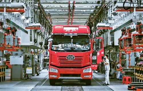 企業強則國家強,加快建設世界一流企業是全面建設社會主義現代化國家的重大任務,是新時代國有企業的戰略目標。近來,一汽解放集團股份有限公司生產按下“加速鍵”。圖為2022年6月15日,工人在位于吉林長春的一汽解放總裝車間內裝配車輛。 新華社記者 許暢/攝
